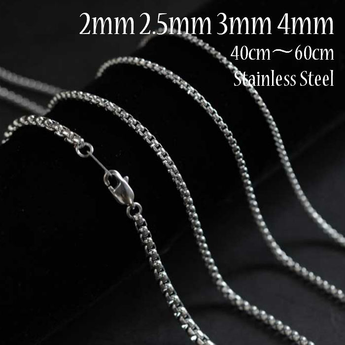 ネックレスチェーン サージカルステンレス製 ボックスチェーン 2mm 2.5mm 3mm 4mm 40cm 45cm 50cm 55cm 60cm 留め金具 チェーンエンドパーツが選べます!