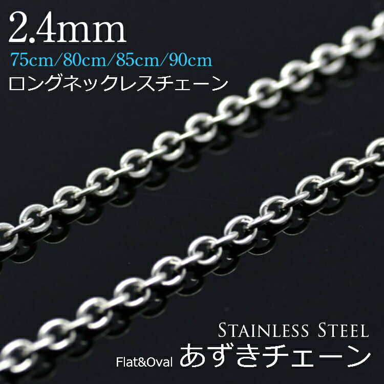 ロングネックレスチェーン/サージカルステンレス製 2.4mm あずきチェーン マルあずき/平あずきチェーン/75cm/80cm/85cm/90cm