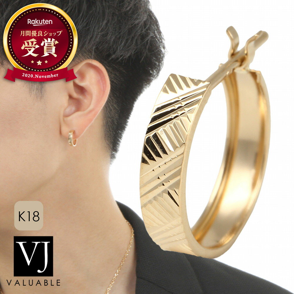 18k ピアス 18金 イエローゴールド メンズ フープ 「 Altenate カット hoop 」※1個販売 (片耳) [ vj k18 揺れ トレンド リング シンプル 幅広 ジュエリー カジュアル ブランド ハワイアン 10k ギフト プレゼント アメリカン イタリア ネイティブ 片方 人気 ]