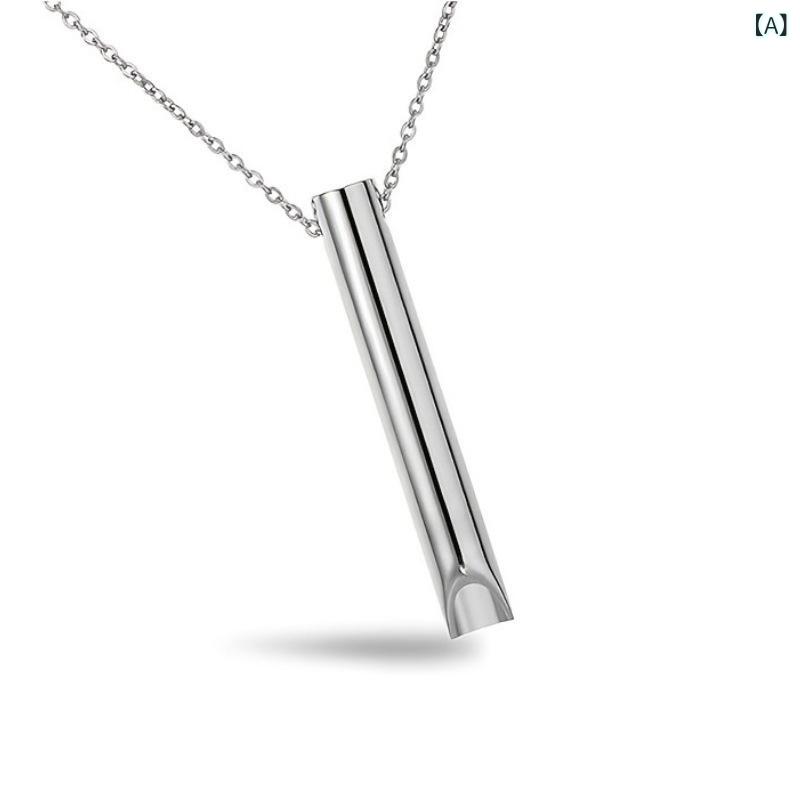 ネックレス 男女兼用 ホイッスル ペンダント ステンレス製 シンプル 立体デザイン ロングネックレス 瞑想 リラックス スタイリッシュ 幾何学モチーフ ファッションアクセサリー スチール ブラック ゴールド ローズゴールド