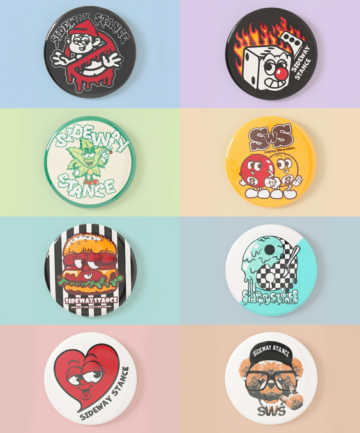 缶バッジ メンズ レディース SIDEWAY STANCE サイドウェイスタンス オリジナルプリント グラフィック 小物 ワンポイント アメカジ カジュアル スケーター ストリート 韓国ファッション