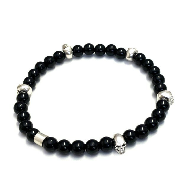 ニューヨークはグリニッジビレッジ生まれのシルバージュエリーブランド FLASH POINT(フラッシュポイント)。 ジョニーデップご用達の刺青師ジョナサンを中心に広まり、NYでもコアな愛用者が多いジムスカルリングが代表作です。 雰囲気のあるシルバー製スカルビーズを5つ配置した天然石ビーズブレスレット。 他のブレスとのレイヤードも楽しめるボリューム感です。 オニキス・タイガーアイ・ターコイズの3種展開です。 オニキス・タイガーアイは¥73,000-+tax・ターコイズは¥90,000-+taxとなります。ご注意ください。 ■オニキス・タイガーアイ・ターコイズからお選びください。 ■石サイズ:6mm前後 ■SMALL:手首約15cm前後 ■MEDIUM:手首17cm前後 ■LARGE:手首19cm前後