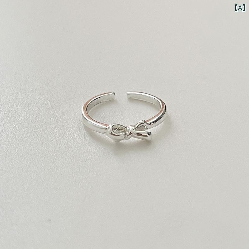 指輪 レディース リボン 幾何学模様 シンプル オープンリング 重ね付け フリーサイズ インフルエンサー トレンド 普段使い デイリー スタイリッシュ 上品 亜鉛合金