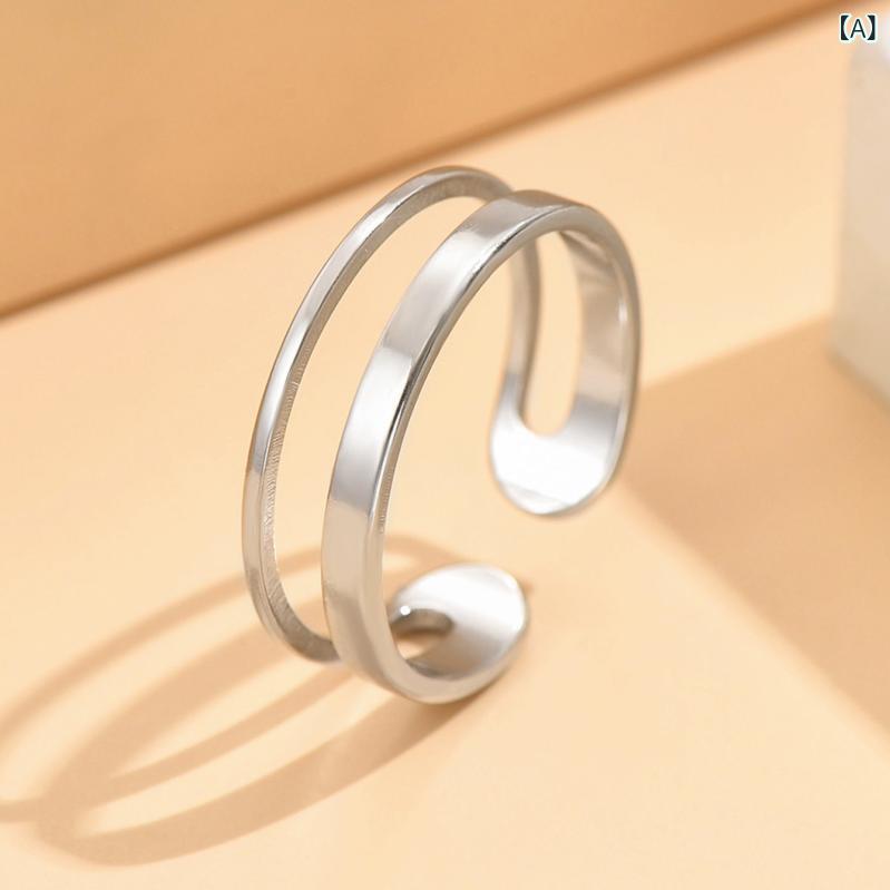 指輪 レディース 女性用 サージカルステンレス ステンレス オープンリング フリーサイズ 調節可能 シンプル プレーン 光沢 重ね付け おしゃれ 普段使い オフィス カジュアル 人差し指 シルバー ゴールド