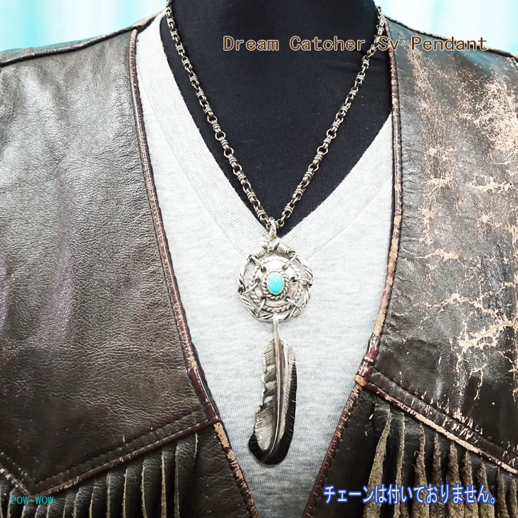 ドリームキャッチャー シルバーペンダント スリーピングビューティ ターコイズ 銀細工師の手作業による、 とても繊細な作りのドリームキャッチャー究極の一点ものです。 大きめのフェザー1本が揺れる 魅力的でとても目を引くシルバーペンダントです。 ゴージャス感溢れる、 こんなドリームキャッチャーはいかがですか? ぜひコレクションに加えて頂き、 末永くご愛用頂ければ嬉しいです。 ※アメリカ先住民の間では、悪い夢をネットに引っ掛け 良い夢だけを通すと言われており 大小様々なアイテムが作られています。 日本でも"お守りとして"根強い人気があり ひとつはお持ちの方も多いと思います。 パウワウではそんなドリームキャッチャーを シルバーで作ってみました。 ■全長 約107.3mm ■最大幅 約32.3mm ■バチカン部内径 約6.7×5.5mm 【フェザーのサイズ】 ■長さ 約65.5mm ■最大幅 約17.3mm ■バチカン内径 約4.5×7mm ■約1mm厚の銀地金(シルバー板)使用 ■素材 スターリングシルバー 925 スリーピングビューティ ターコイズ 約6×8mm ※チェーンは付いておりません。 他のシルバーアクセ工房 パウワウ代官山 製作 ターコイズアクセサリー もご覧下さいませ。 他の新作イーグルフェザーアクセサリーはこちら。 ※撮影条件やお客様のモニターによっては画像の色が実際のものと 多少異なって見える場合がございますのであらかじめご了承下さい。ドリームキャッチャー シルバーペンダント ネイティヴ(アメリカ先住民)のスピリット