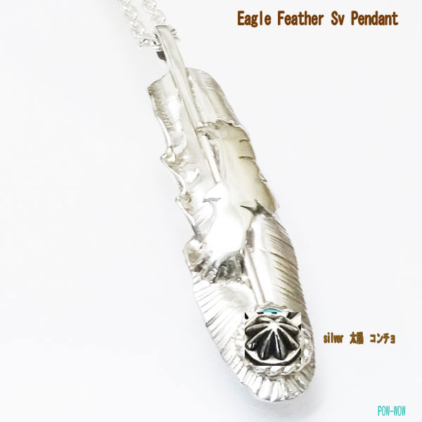 フェザー ネックレス フェザーペンダント【受注製作】ネックレス ストレート シルバー 925 打ち込み イーグルメタル 太陽コンチョ 白頭ワシ 羽 ハンドメイド