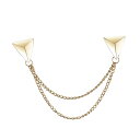 スタッドダブルチェーンブローチピン シャツネックカラーチップ タッセルチェーン付き ブラウスラペルピン スーツ用, 亜鉛