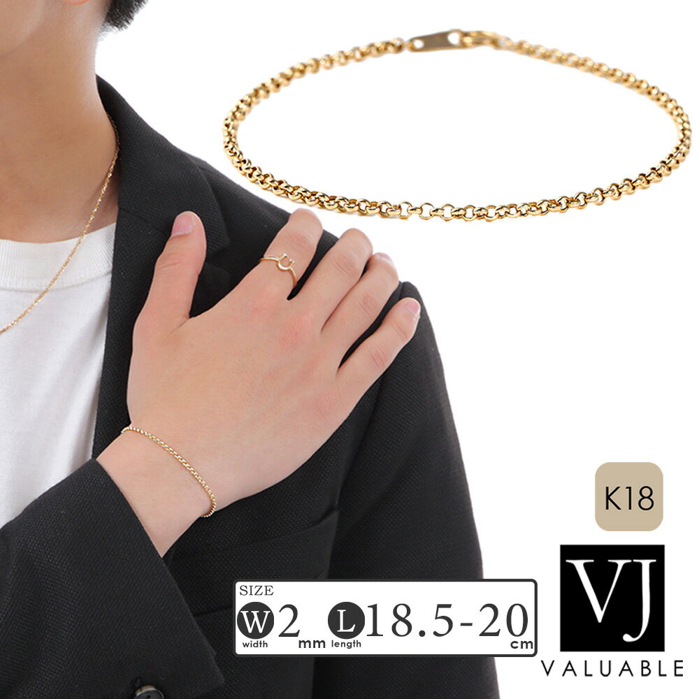 18金 ブレスレット 18k メンズ イエローゴールド 「 Royal ロール チェーン 」 2mm 幅 ブレス ※長さ約18.5cm 約20cm 選択[ K18 イタリア アメリカ ラギッド ハーフランド ハワイアン ジュエリー ロロ フレア 男性 定番 キヘイ ブランド アズキ 喜平 ]