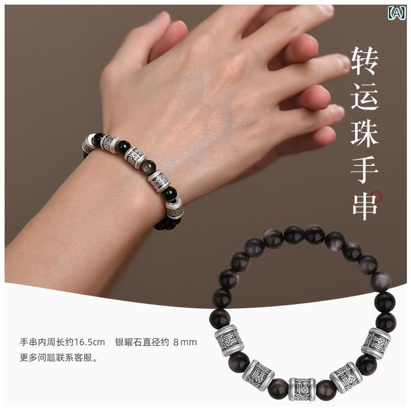 ブレスレット ジュエリー おしゃれ Luotai Old Silversmith 999 スター リング シルバー 五 福 転 写 ビーズブレスレット メンズファッション 新 チャイナ風 ブレスレット 黒曜石