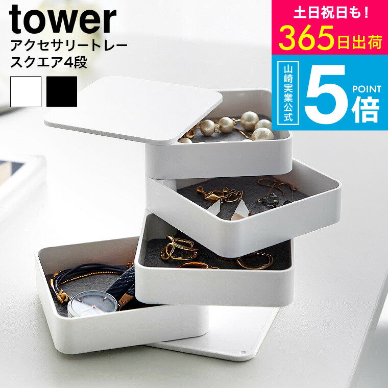 (土・日発送可) [ アクセサリートレー タワー 4段 スクエア ] タワー山崎実業 公式 tower 1753 1754 ホワイト ブラック / ジュエリーボックス ジュエリーケース アクセサリーケース アクセサリー収納 yamazaki タワーシリーズ 最強配送 送料無料