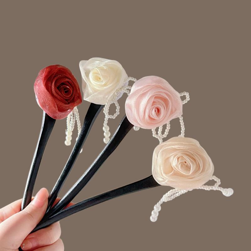 かんざし レディース 高級感 歩揺 パール 木製 花つぼみ 古風 ネオチャイニーズスタイル 髪飾り 和装小物 着物 浴衣 ドレス 結婚式 披露宴 成人式 ホワイト レッド ピンク