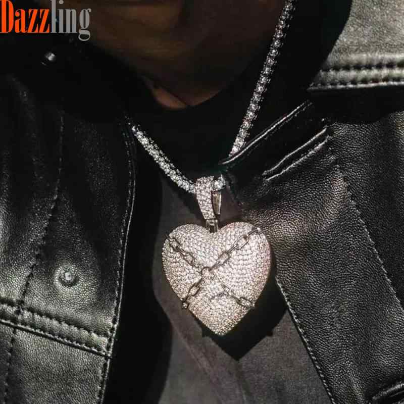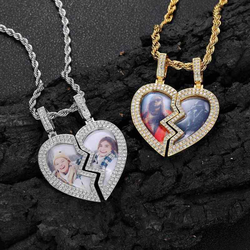 ネックレス メンズ 磁石 ハート 写真 ペンダント マイクロ ジルコニア 銅製 ヒップホップ 個性 アクセサリー