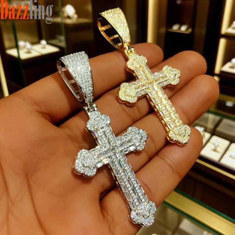 ネックレス メンズ 男性用 十字架 クロス ジルコニア 銅 ペンダント 幾何学 個性 派手 シルバー シルバー ゴールド ゴールド ヒップホップ 麻花チェーン