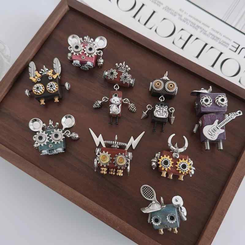 ペンダント メンズ レディース ネックレス 木製 ロボット パンク アクセサリー パーツ カートゥーン ヒップホップ クール 手作り ペンダントトップ