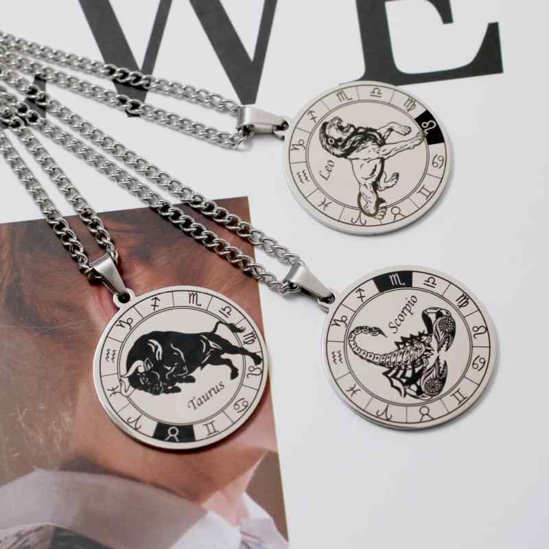ネックレス メンズ 12星座 獅子座 モチーフ 回転 ペンダント チタン鋼 不锈钢 十字チェーン 51cm-80cm 水瓶座 双魚座 白羊座 金牛座 双子座 巨蟹座 処女座 天秤座 天蝎座 射手座 摩羯座 ヒップホップ アクセサリー