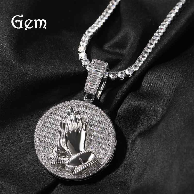 ネックレス メンズ 幾何学 円形 ペンダント 銅 ジルコニア 祈り 手 ストリート ヒップホップ スタイル 男性用