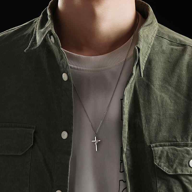 ネックレス メンズ チタン鋼 麻紐 小さめ十字架 ペンダント チョーカー 58cm スティールカラー ヒップホップ スタイル ユニセックス