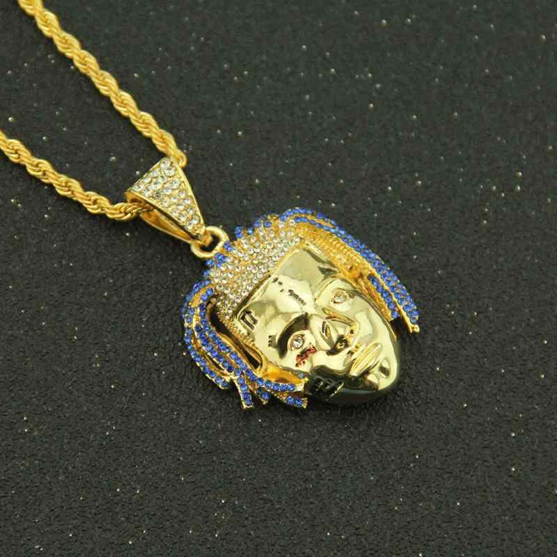 ネックレス メンズ 銅製 ジルコニア 人物モチーフ ペンダント 3mm 24inch ステンレス 麻の葉チェーン ヒップホップスタイル 個性派 ゴールド シルバー