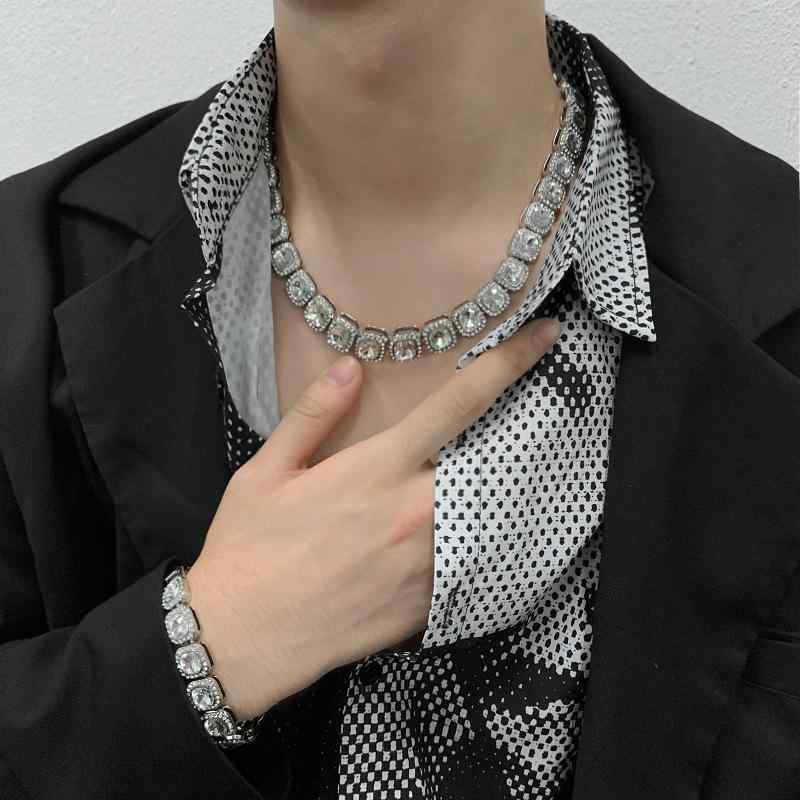 ネックレス メンズ 男性用 チタン鋼 手作り 힙합 ヒップホップ 拼接 切り替え アクセサリー スティール シルバー