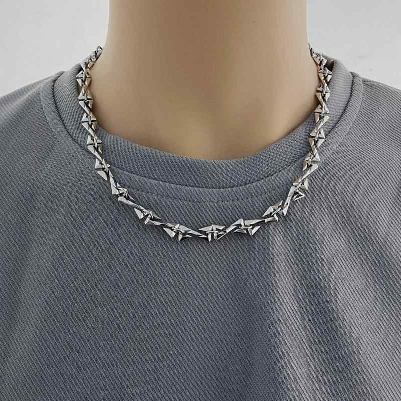 ネックレス メンズ 男性用 シルバー925 キューバチェーン ヒップホップ 幾何学模様 鎖骨 チョーカー ペンダント アクセサリー