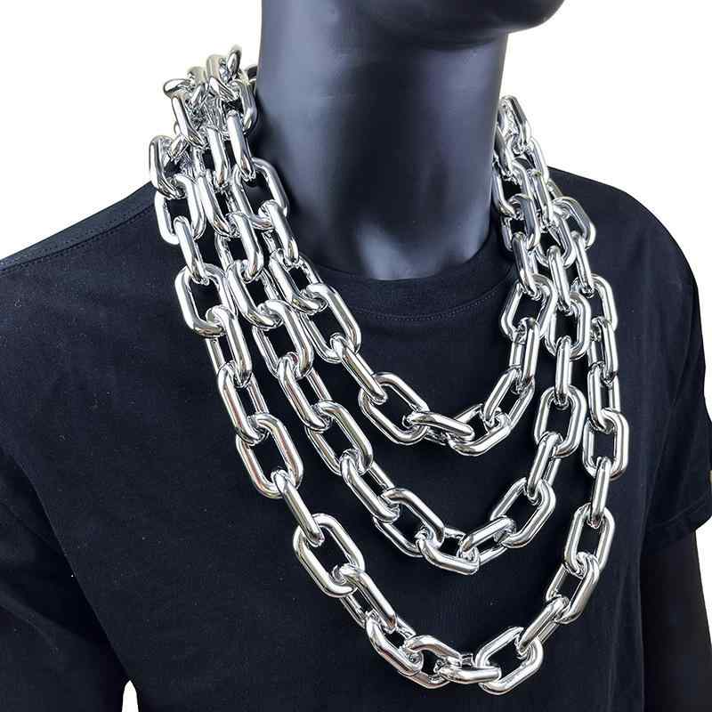 2個セットネックレス メンズ 男性用 ヒップホップ プラスチック製 ロック 大ぶり ゴールド シルバー 舞台 夜店 個性 アクセサリー