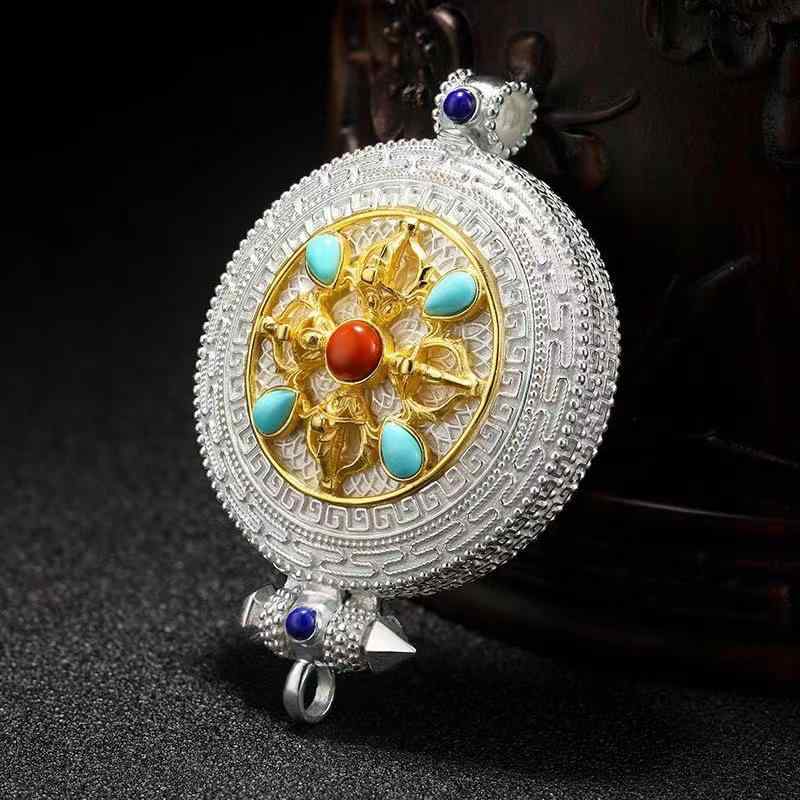 ペンダント メンズ 仏龕 金剛杵 幾何学模様 回転可能 八吉祥 銅製 レトロ アクセサリー