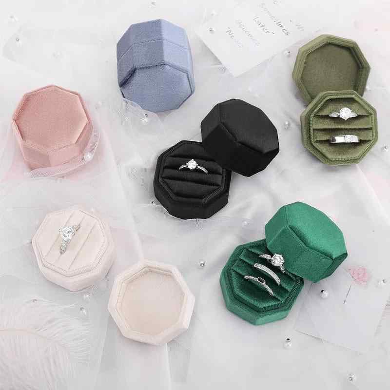 指輪 ケース 天鵞絨 ジュエリー ボックス 八角形 ミニ ベルベット 無地 ホワイト ブラック グリーン ブルー ピンク パープル 1個用 3個用 普段使い