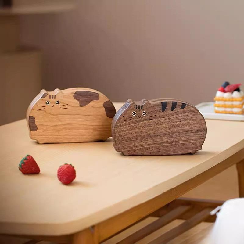 木製 猫型 アクセサリーケース 携帯用 小型 ブレスレット ネックレス ジュエリーボックス ピアス イヤリング 収納 整理 桜桃木 黒胡桃