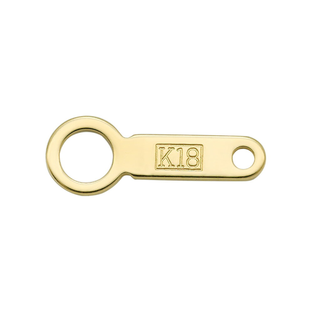 日本製18金ゴールドのプレート止め具です。ネックレスやブレスレット等にどうぞ。※イエローゴールドについてイエローゴールドとは純金に銀と銅等を混ぜ合わせたカラーゴールドの一種。純金に近い黄色みの強い色味が特徴で、ジュエリー業界で最も一般的な定番カラーです。商品情報サイズ約 縦(l)10.0×横(w)3.5×厚さ(d)0.4mm重量約 0.09g前後内容量1個素材無垢の18金イエローゴールド(日本製)備考・ラッピング不可※上記表の数値は参考値です、実際にはロットにより多少前後します。※地金相場等により販売価格を予告無く変更する場合がございます、ご了承下さい。18金 イエローゴールドの成分純金はそのままでは柔らかすぎる為、合金とすることでジュエリーとしての強度を持つことが出来ます。18金は全体の75%が金、残り25%に銀と銅、パラジウム等を含むことで美しい色あいと強度を保ちます。18金以外の純度の金製品も市場には流通しておりますが、18金は日本で最も普及しているジュエリーの主流です。金の含有量が多い18金は、他の金属と比べて変色や汚れ、錆びに強く、アレルギーによる肌荒れが起きにくい為、高級感のある輝きを末永くお楽しみ頂けます。※18金は一般的に金属アレルギーを起こしにくい素材ですが、体質や汗などによりアレルギー反応が出る場合もございます。なお、当店では同じ18金でも異なる色のゴールドを取り扱っており、デザインも種類豊富です、お好みやシーンに合わせてお選び下さい。金は男性、女性問わず人気があるので、特別なギフトや記念日の贈り物としてもお勧め致します。18金ゴールド パーツ高級感が漂う貴金属製のアクセサリーパーツです。※当店の18金製の全ての商品には18金である事を証明する刻印が入っております(小さなパーツ類は除く)。