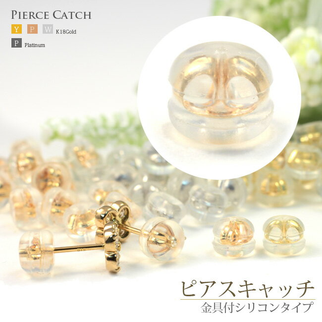 ピアス用 金具付 シリコンキャッチ 2個1セット (ダブルキャッチ) K18YG K18PG K18WG Pt900プラチナ ダブルロック式 ゴールド【母の日 プレゼント ギフト お祝い ジュエリー 誕生日 記念日 クリスマス】