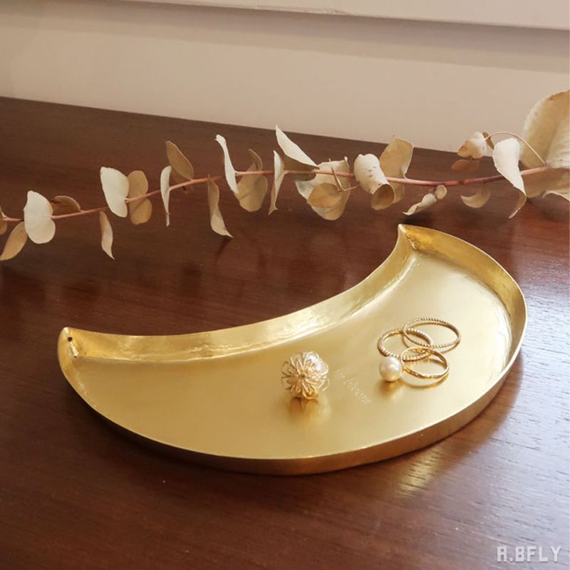 アクセサリートレイ 真鍮風 ゴールド 金色 ハンドメイド デザイン インテリア ムーン 月 光沢 ゴージャス エレガント デスク周り 整理 上品 小物入れ アクセサリー置き アンティーク レトロ ソフトヴィンテージ クラシカル プレゼント 贈り物