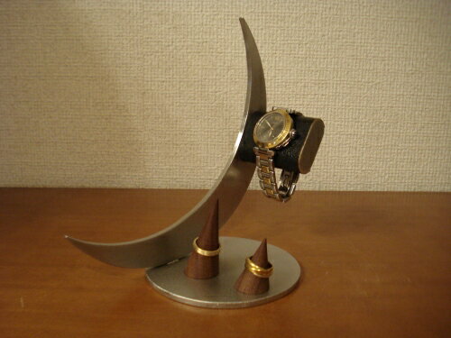 プレゼントに 腕時計スタンド 三日月ムーンダブルリングスタンド付きブラック腕時計スタンド