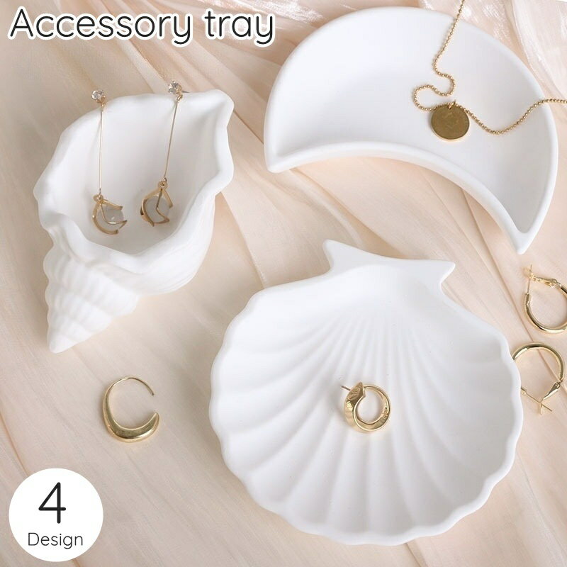 送料無料 アクセサリートレイ アクセサリートレー アクセサリープレート 小物入れ 小物置き 小皿 収納 貝殻 シェル 月 ムーン 人魚 マーメイド 海 かわいい 卓上 インテリア おしゃれ ホワイト 白