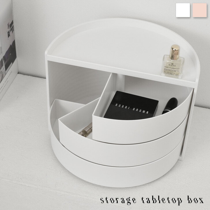 \本日店内EVENT/ 大容量 3段 360度 回転式 ハーフムーン 卓上 収納ボックス アクセサリーケース ジュエリーケース アクセサリーボックス メイクボックス 小物入れ アクセサリー コスメ トレイ プラスチック 収納 引き出し