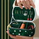 アクセサリーケース レディース 旅行 携帯用 レザー調 コンパクト ジュエリーボックス ストライプ柄 グリーン