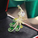 ブローチ 孔雀 クジャク アニマルモチーフ レトロ ヴィンテージ 合金製 煌めくラインストーン カラフル グリーン 緑 欧米風 個性的 オリジナルデザイン スーツ ジャケット フォーマル カジュアル ファッション小物 プレゼント ギフト
