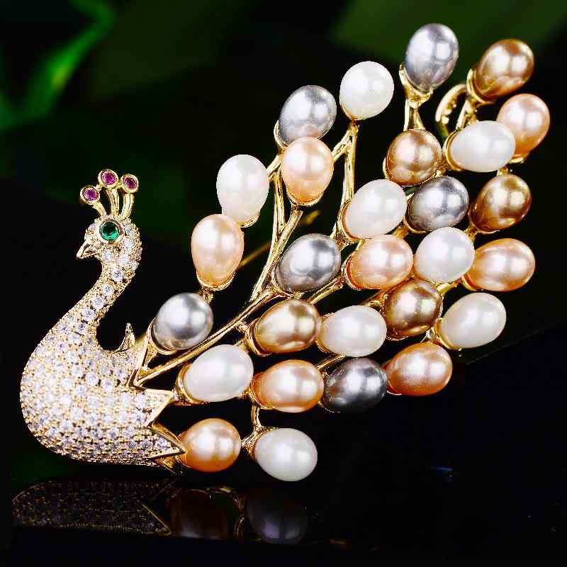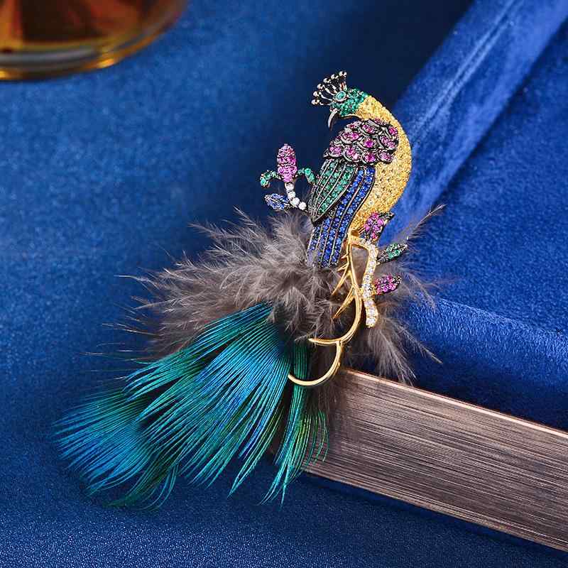 ブローチ レディース ジルコニア クジャク 羽飾り エレガント 華やか 韓国風 おしゃれ 銅製 電気メッキ加工 チャイナドレス スーツ フォーマル 結婚式 パーティー 卒業式 入学式 通勤