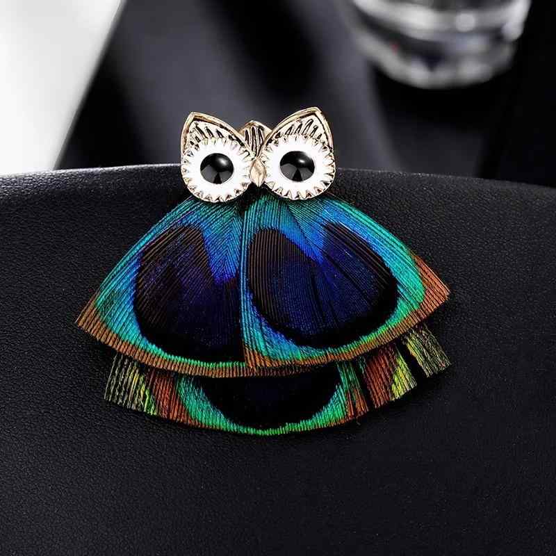 ブローチ レディース レトロ アンティーク調 クジャク 羽根 フクロウ 上品 おしゃれ 高級感 ハンドメイド アクセサリー ジャケット ピン 合金製 ドロップオイル加工