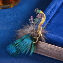ブローチ 男女兼用 ユニセックス 多機能 電気メッキ加工 キラキラ ジルコニア 装飾 高級感 エレガント カラフル クジャク フェザーモチーフ 大ぶり レトロ アニマルモチーフ 合金製 ファッション 通勤
