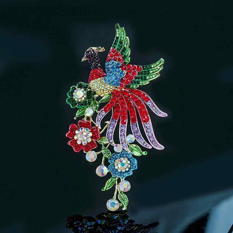 ブローチ 男女兼用 ユニセックス 亜鉛合金 エナメル ジルコニア風 小鳥 バード フェニックス 鳳凰 クジャク ピーコック 動物 ピン エレガント 上品 華やか アクセサリー フォーマル カジュアル