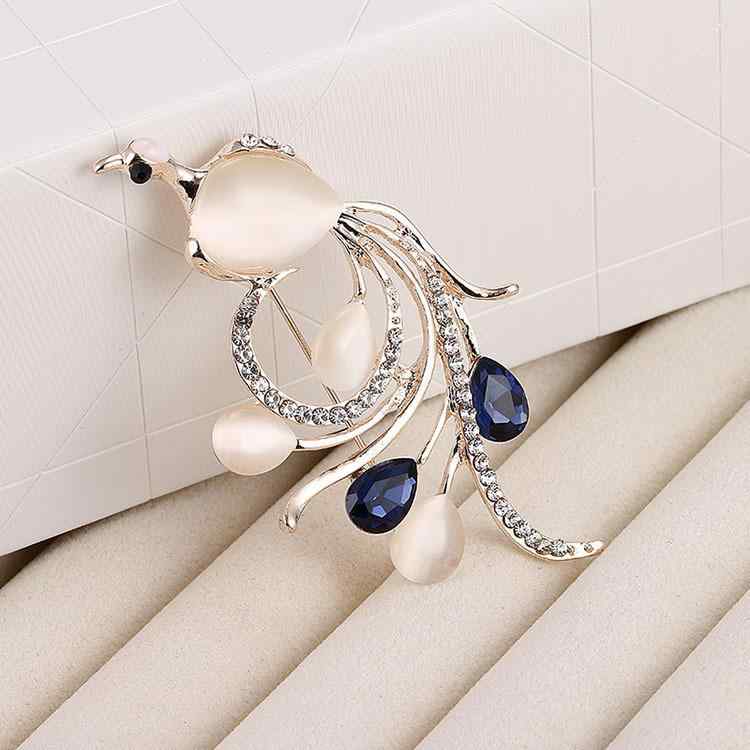 ブローチ レディース 女性用 韓国風 エレガント 上品 キャッツアイ 猫目石 クジャク ラインストーン ビジュー 合金 アニマルモチーフ 普段使い オフィス パーティー フォーマル