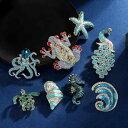 ブローチ 男女兼用 ユニーク 個性的 おしゃれ かわいい 海の生き物 ウミガメ タコ クジャク ラインストーン キラキラ 合金製 電気メッキ 高級感 普段使い アクセサリー