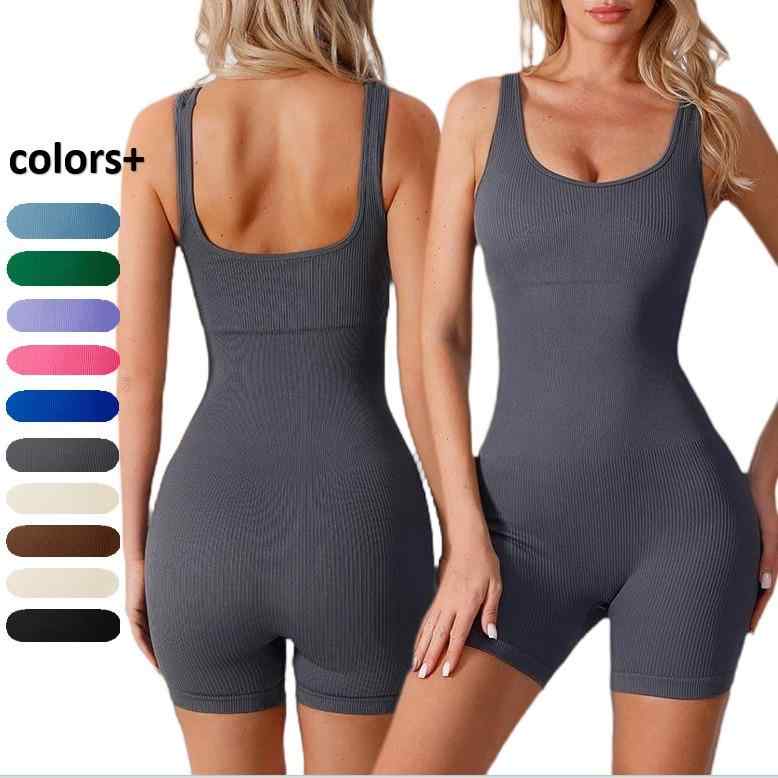 2ヨガウェア レディース サロペット ショートパンツ リブ 無縫製 スポーツウェア アウトドア 伸縮性 ストレッチ トレーニング かわいい