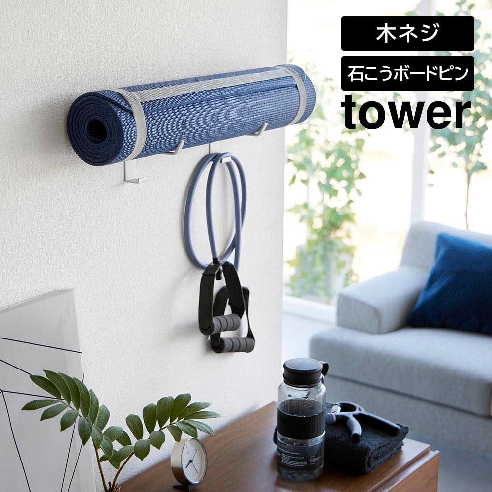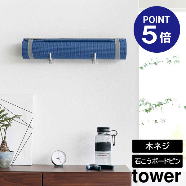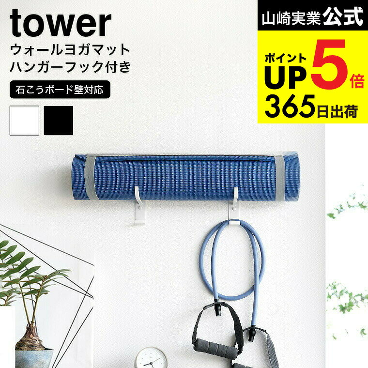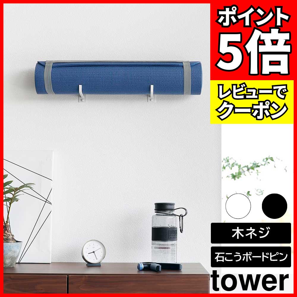 (土・日発送可) [ 石こうボード壁対応ウォールヨガマットハンガー フック付き タワー ] 山崎実業 公式 tower ホワイト ブラック 4092 4093 / ヨガマット トレーニンググッズ 収納 リビング 浮かせる収納 タワーシリーズ yamazaki JGS 最強配送 送料無料