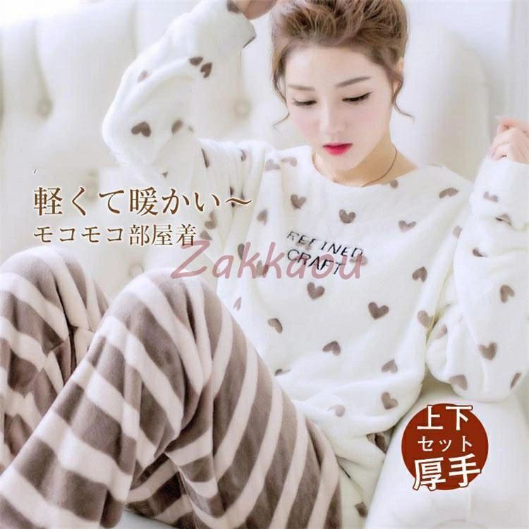 冬新作 冬パジャマ レディース 秋冬 ルームウェア 部屋着 寝巻き モコモコ 長袖 フランネル プレゼント 暖 上下セット 可愛い 防寒 暖かい
