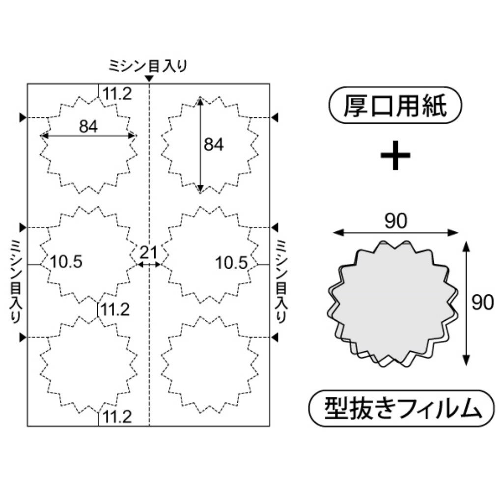 配送区分:MサイズHG201Z4※ご注文手続き後、当店より発送予定日または取寄商品の在庫有無・納期を記載したご注文確認メールをお送りいたしますので必ずご確認をお願い致します。 こちらの商品はお取り寄せの商品となり、通常、土日祝を除く7営業日前後での発送となります。(詳細納期はご注文後にメールにてご案内致します。) ※発注手配の可否をメールにてご確認させて頂く場合がございます。必ず当店からご案内するメールをご確認ください。 ※商品の手配ができない場合や、発注手配可否の確認が取れない場合には誠に申し訳ございませんがキャンセルとさせていただきます。 ※直送の場合別途送料が掛かる場合がございます ※キャンペーン期間特価の場合ご注文金額が変更となる可能性がございます。 ※メーカーや弊社取引先へ申請書のご記入・提出をお願いする場合がございます。ギザギザ型のPOPが作成できる用紙とラミネートフィルムセット・商品詳細 : 用紙とラミネートフィルムがセットになって、ギザギザ型のPOPが作成できるキット。オリジナルデザインのPOPがはさみ・カッターを使わず簡単に作成できます。用紙に印刷して、ミシン目で切り離し、同じ形のフィルムにはさんでラミネートすれば完成。手書きでもOK。フィルムづまり防止のキャリアシート付き!セット内容:印刷用用紙:3枚・型抜きラミネートフィルム:18枚・ラミネート用キャリアシート:1枚・製品タイプ : その他用紙・対応プリンタタイプ : インクジェット/レーザー両対応・カットタイプ : カット紙・対応インク : 顔料・染料・仕様 : ■セット内容 印刷用用紙:3枚・型抜きラミネートフィルム:18枚・ラミネート用キャリアシート:1枚■インクジェット・レーザ・コピー対応■ご使用にはラミネーター(最大ラミネート幅100mm以上の機種)とプリンタが必要です。■用紙サイズ:A4■面付:6■ミシン目切り離し後サイズ:84x84mm■厚さ:0.18mm■坪量:157g/m2■■フィルムサイズ:90x90mm■厚さ:100μm・グリーン購入法 : 非適合・RoHS指令 : 適合・電気用品安全法(PSE) : 対象外