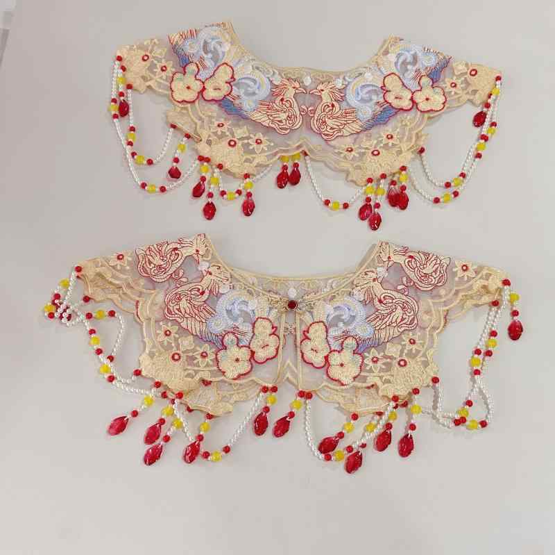 ショール レディース 赤色 レース オーガンジー 刺繍 ブライダル 結婚式 敬老の日 古風 漢服風 つけ襟 付け襟 ストール 秋冬