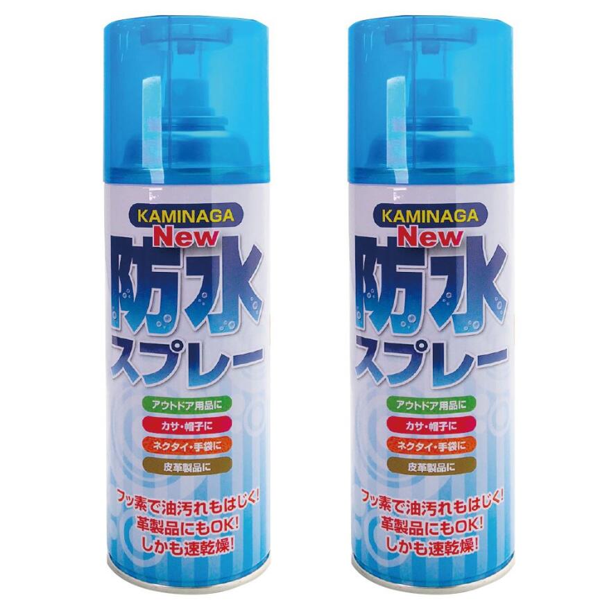 カミナガ 防水スプレー 2本 420ml 梅雨 撥水スプレー スキー スノボ キャンプ テント ブーツ スニーカー 皮革製品 に対応 お手入れ 防汚スプレー メンテナンス用品 雪 衣類 布製品用 はっ水 革 撥水 地域別 送料無料