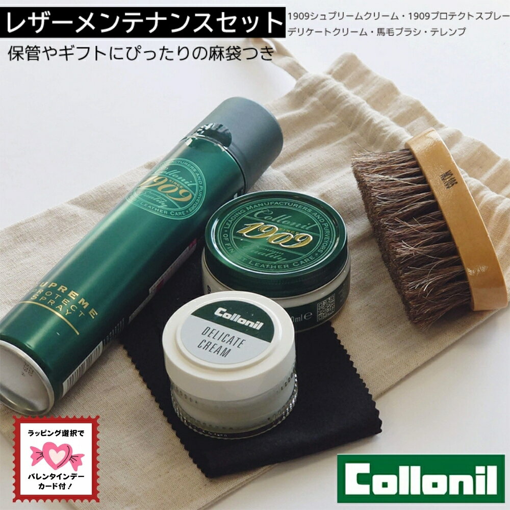 【ギフト選択でバレンタインカード付】コロニル1909シュプリームシューケアセット 靴磨き シューケアセット Dセットコットン袋 正規取扱店 シュプリームプロテクトスプレー デリケートクリーム 馬毛ブラシギフト お手入れ 本革 Collonil