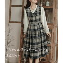 ジャンパースカートとシャツ2点セットアップ 学生服 制服風 フォーマルスーツ 中学生 大学生 カジュアル 入学式 卒業式 黒 ミモレ丈ワンピース 長袖シャツ 可愛い 森ガール系 白 Vネック スカート レディース 女子 文芸系 ゴスロリ ワンピース ブラック 謝恩会 お誕生日にお
